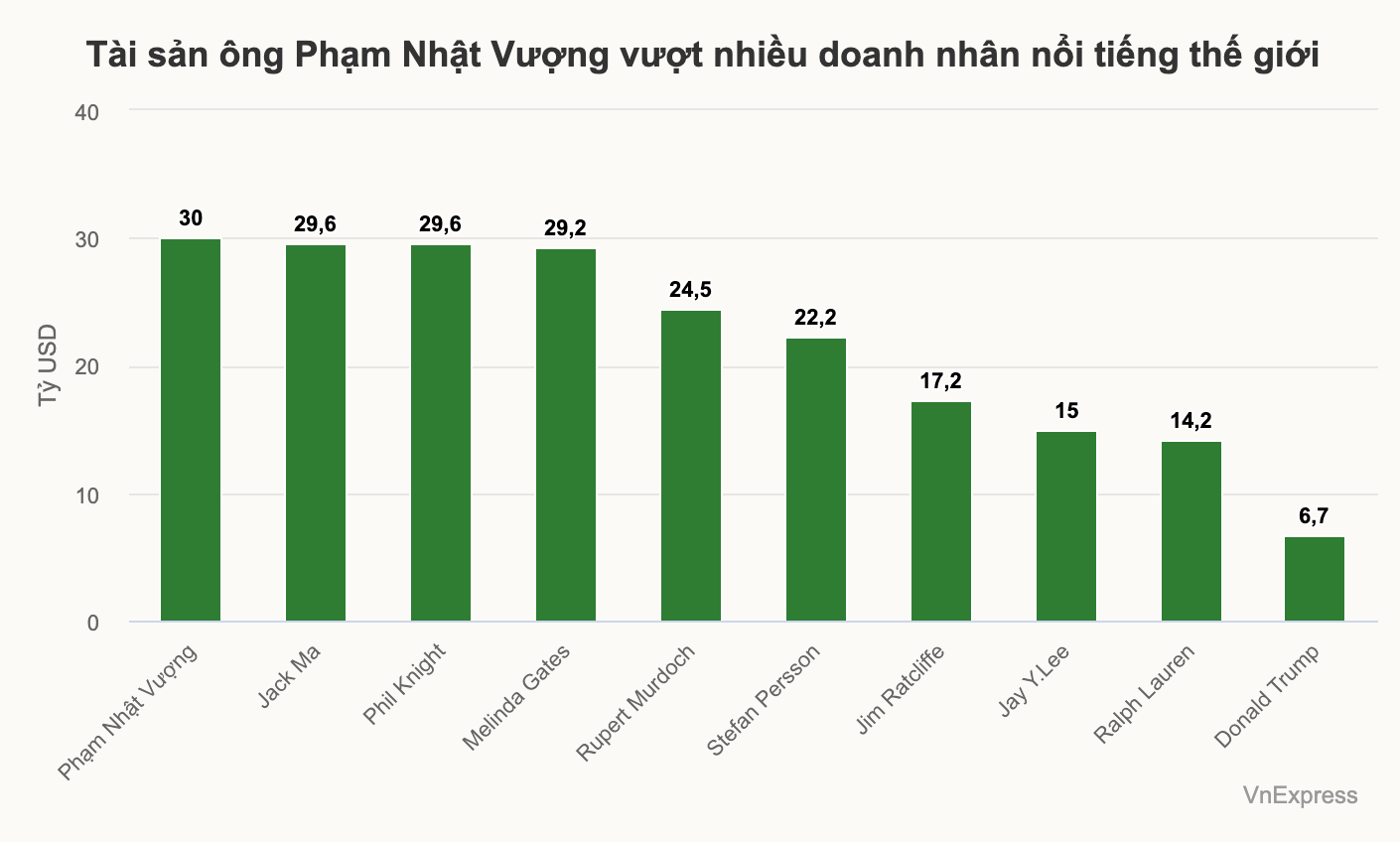 Nguồn: VnExpress, Forbes Real-Time Billionaires, Bloomberg.